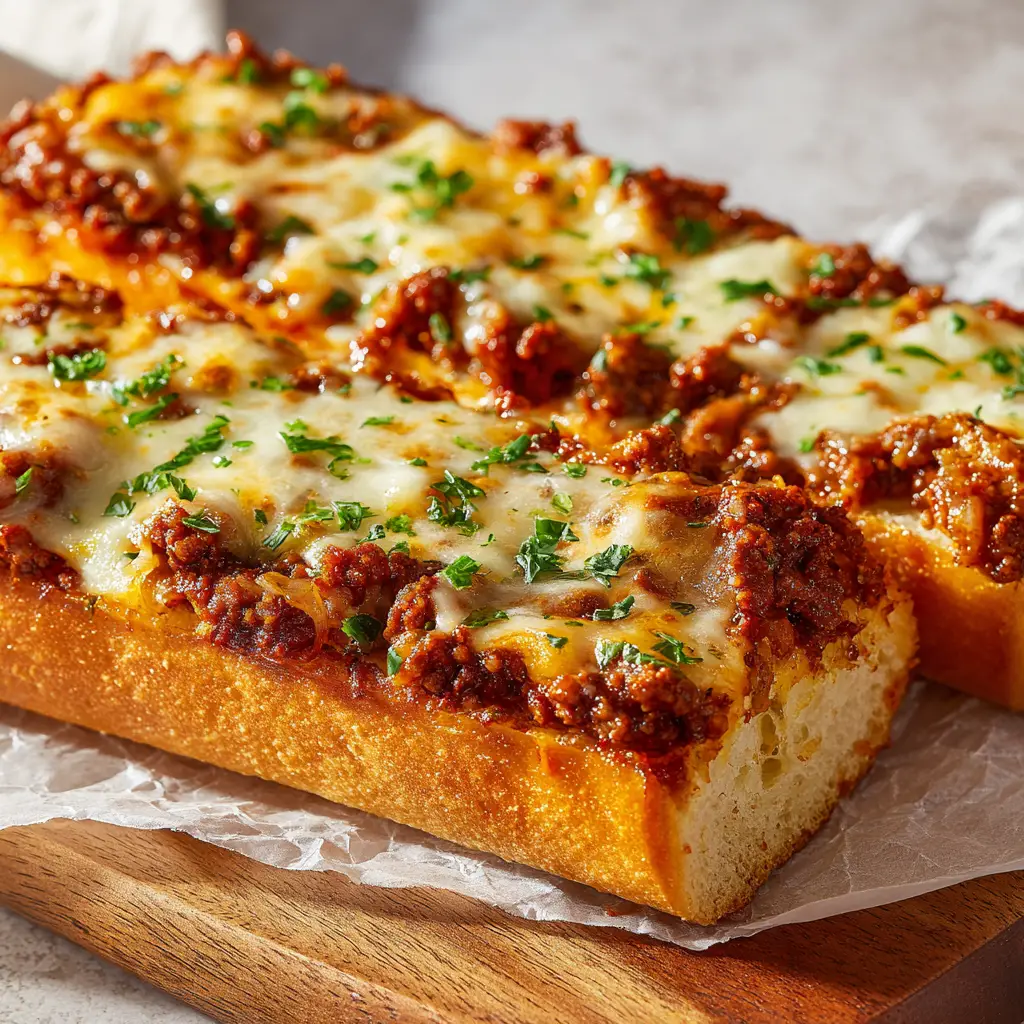If there is one comfort food mashup that will instantly command the attention of everyone at your dinner table, it is this incredible Cheesy Sloppy Joe Garlic Bread. We are taking the nostalgic, tangy flavors of a classic childhood favorite and elevating it into a crispy, shareable masterpiece. Imagine a halved crusty French baguette base, toasted to perfection with golden garlic butter to create an impenetrable barrier against soggy bread.