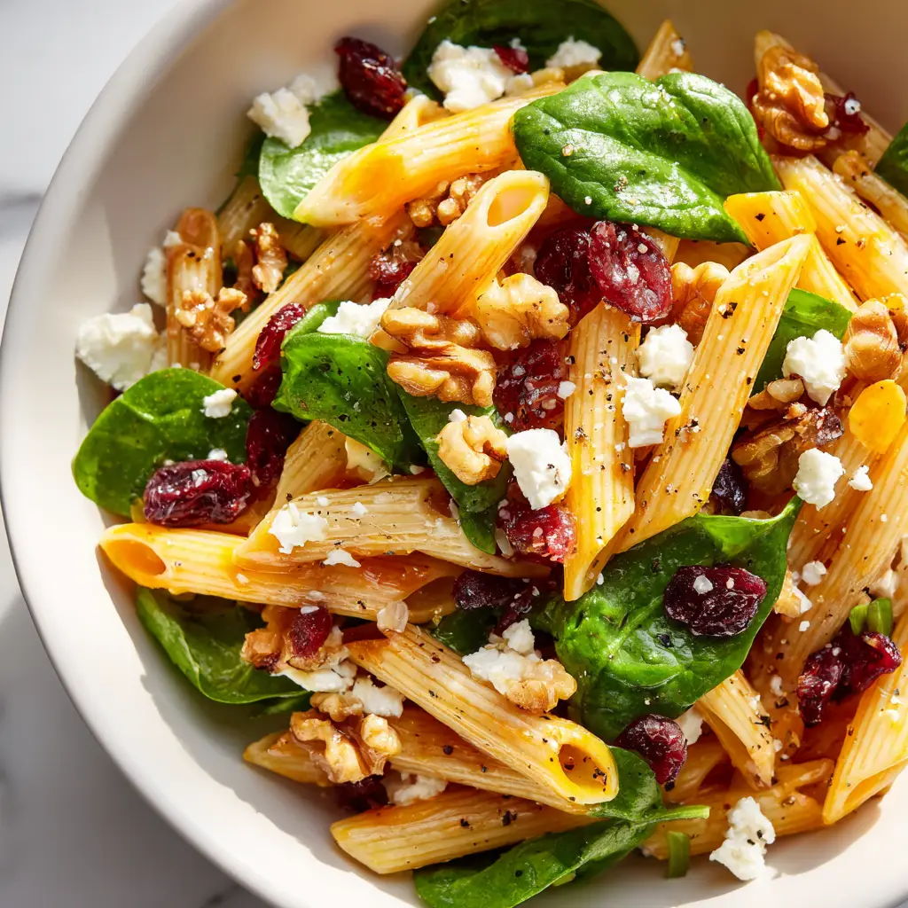 This Cranberry Feta Pasta Salad is the perfect blend of sweet, savory, and tangy. It features tender pasta, salty feta, sweet cranberries, and crunchy walnuts in a light vinaigrette. An easy, crowd-pleasing dish for any occasion.
