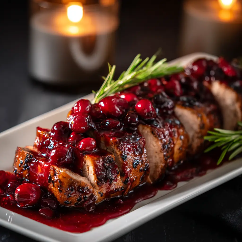 This Cranberry Glazed Pork Tenderloin is the ultimate holiday showstopper. It features a perfectly juicy and tender pork loin roasted to perfection and coated in a sweet and tangy homemade cranberry glaze. It’s an elegant main course that looks impressive on any dinner table but is surprisingly simple to prepare. If you’re searching for a standout dish for Christmas, Thanksgiving, or any special occasion, this recipe is your answer.