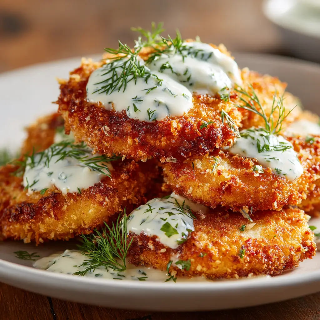 - Dill Pickles: Finely chopped pickles are mixed into the breading for little bursts of flavor.