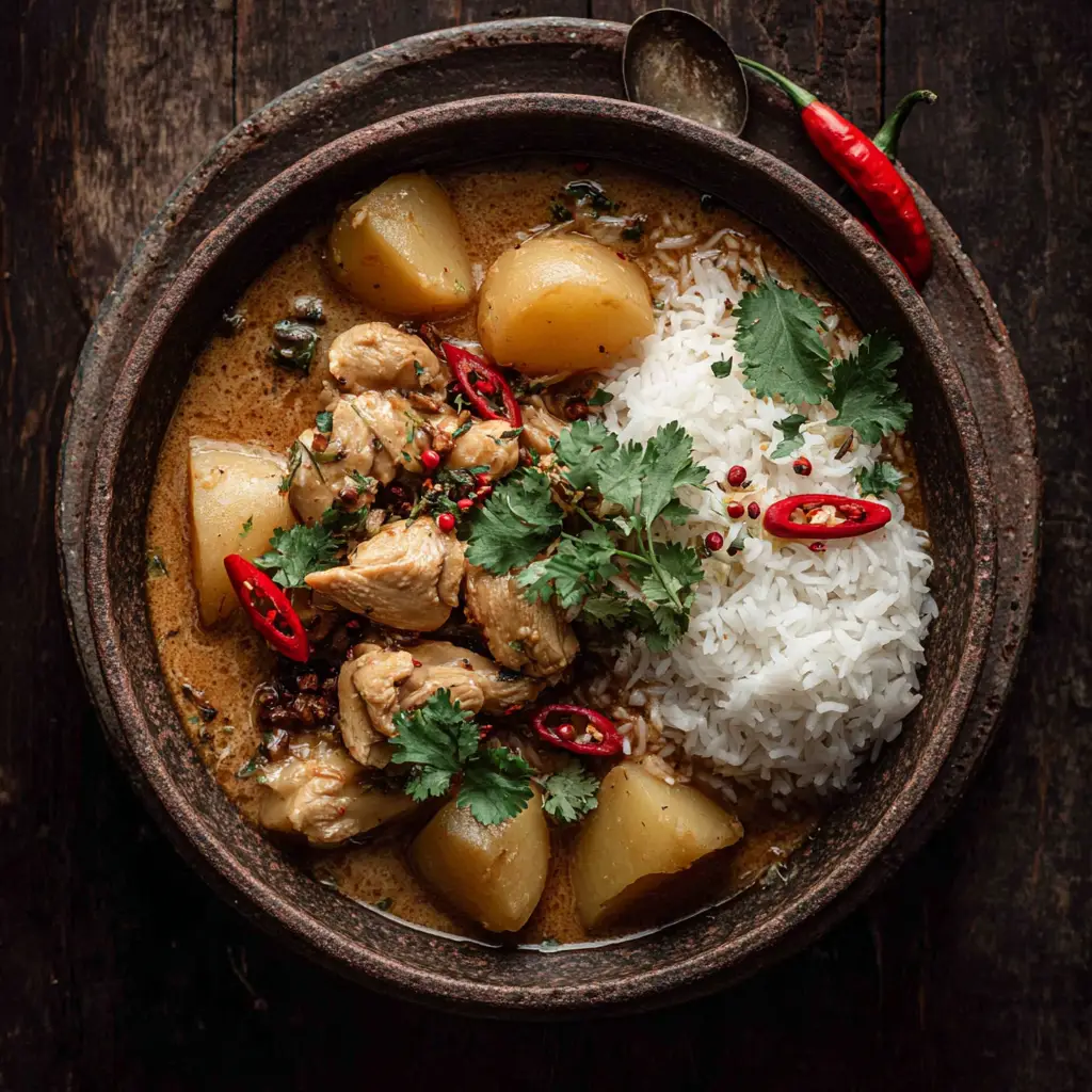 - Serve the Massaman curry hot over a bed of jasmine rice, garnished with fresh cilantro.