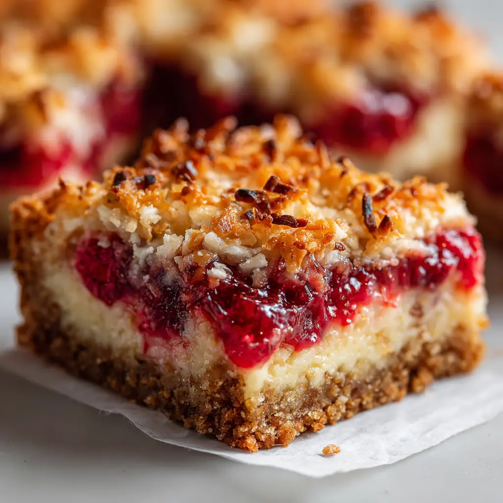 - Visually Stunning: The vibrant red of the jam against the golden-brown coconut and creamy white chocolate makes these bars a showstopper on any dessert table.